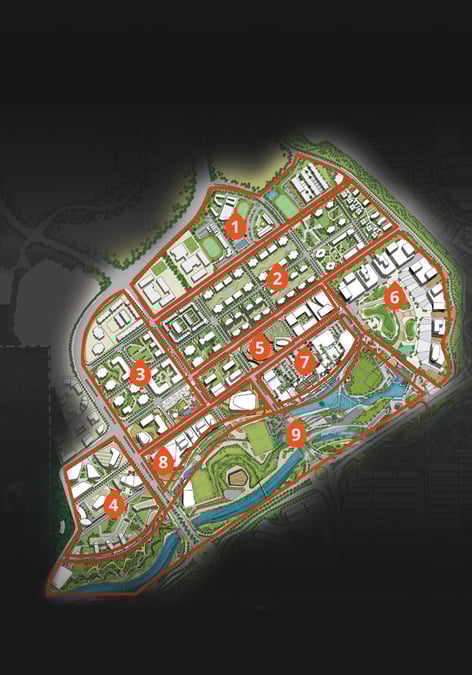 The 350-acre freehold city is designed with 9 components, cleverly integrated to offer a balance of wellness, convenience, lifestyle and living all in one.