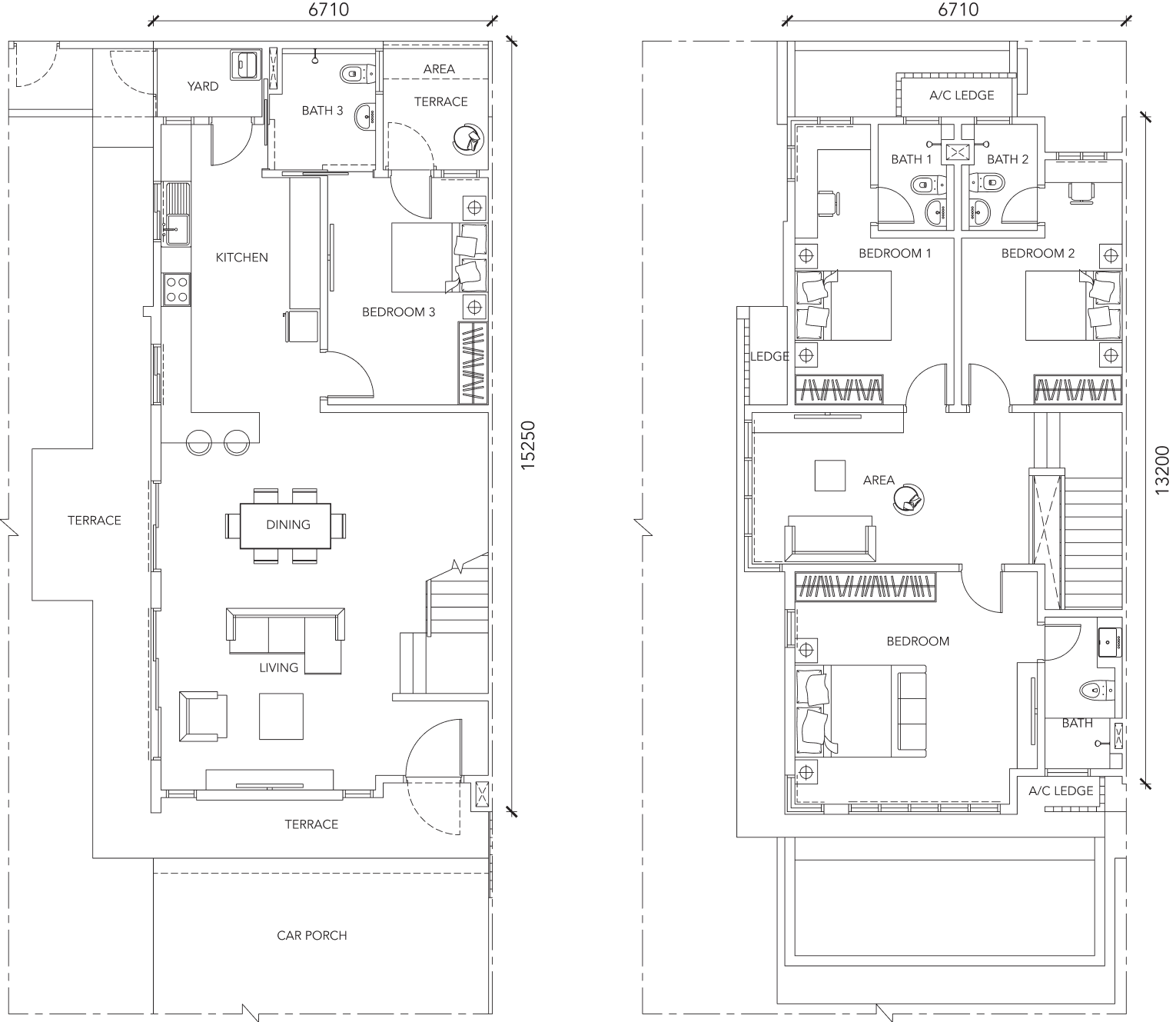 Each bedroom comes attached with a personal bathroom that comes with complete fittings including full height tiles, mirror, and premium sanitary wares.