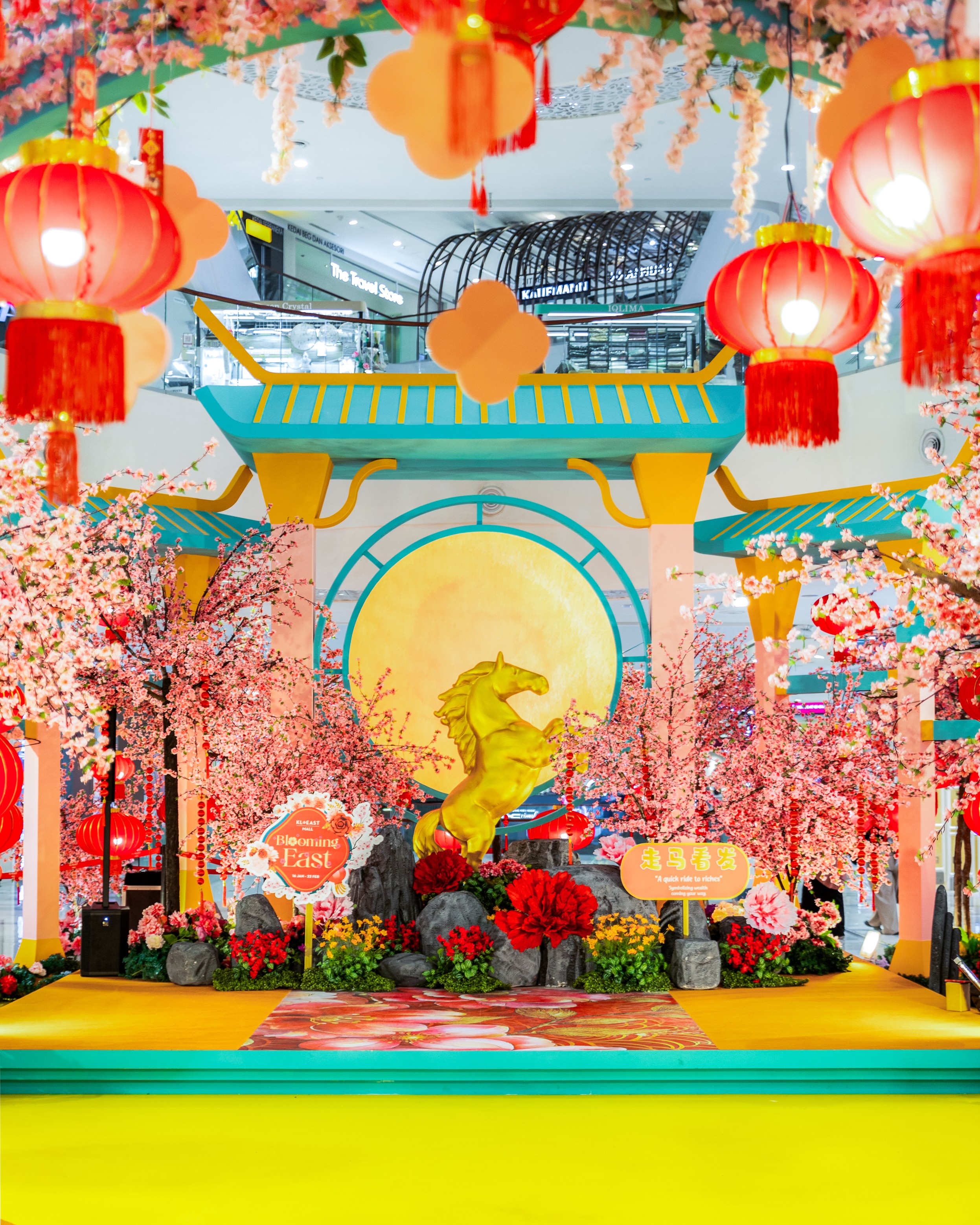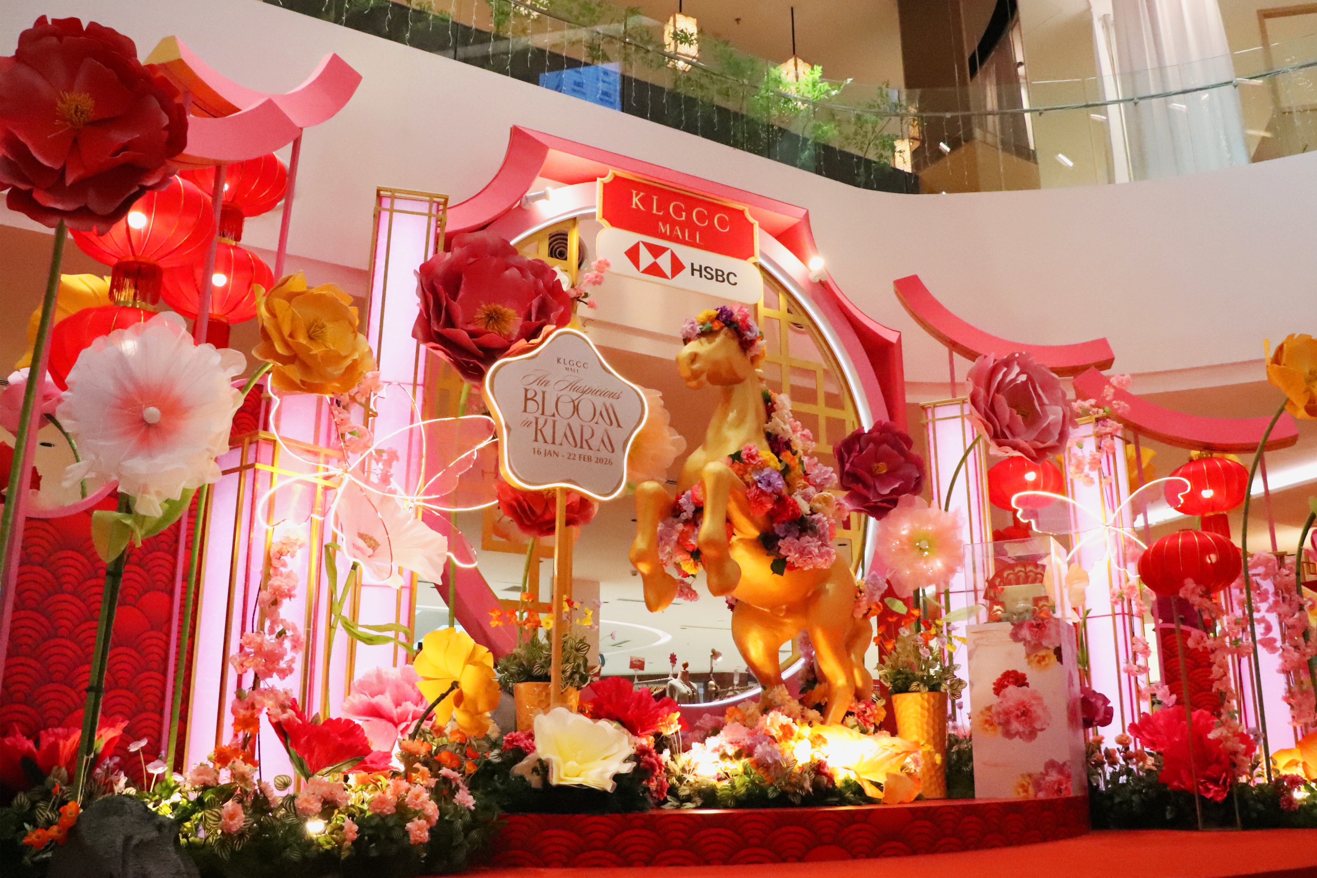 Each mall features a distinct festive landscape, from KL East Mall’s sakura-inspired ‘Blooming East’ and Elmina Lakeside Mall’s ‘Bamboo Bloom Lunar Festival’ to KLGCC Mall’s ‘An Auspicious Bloom’ garden, accented with golden horse motifs symbolising prosperity.