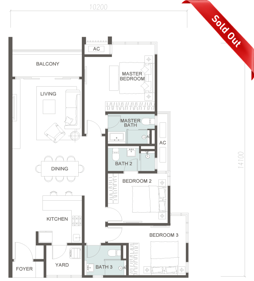 The largest units in The Serenade, perfect for bigger families or multigenerational ones. With an additional private living suite for much needed privacy.