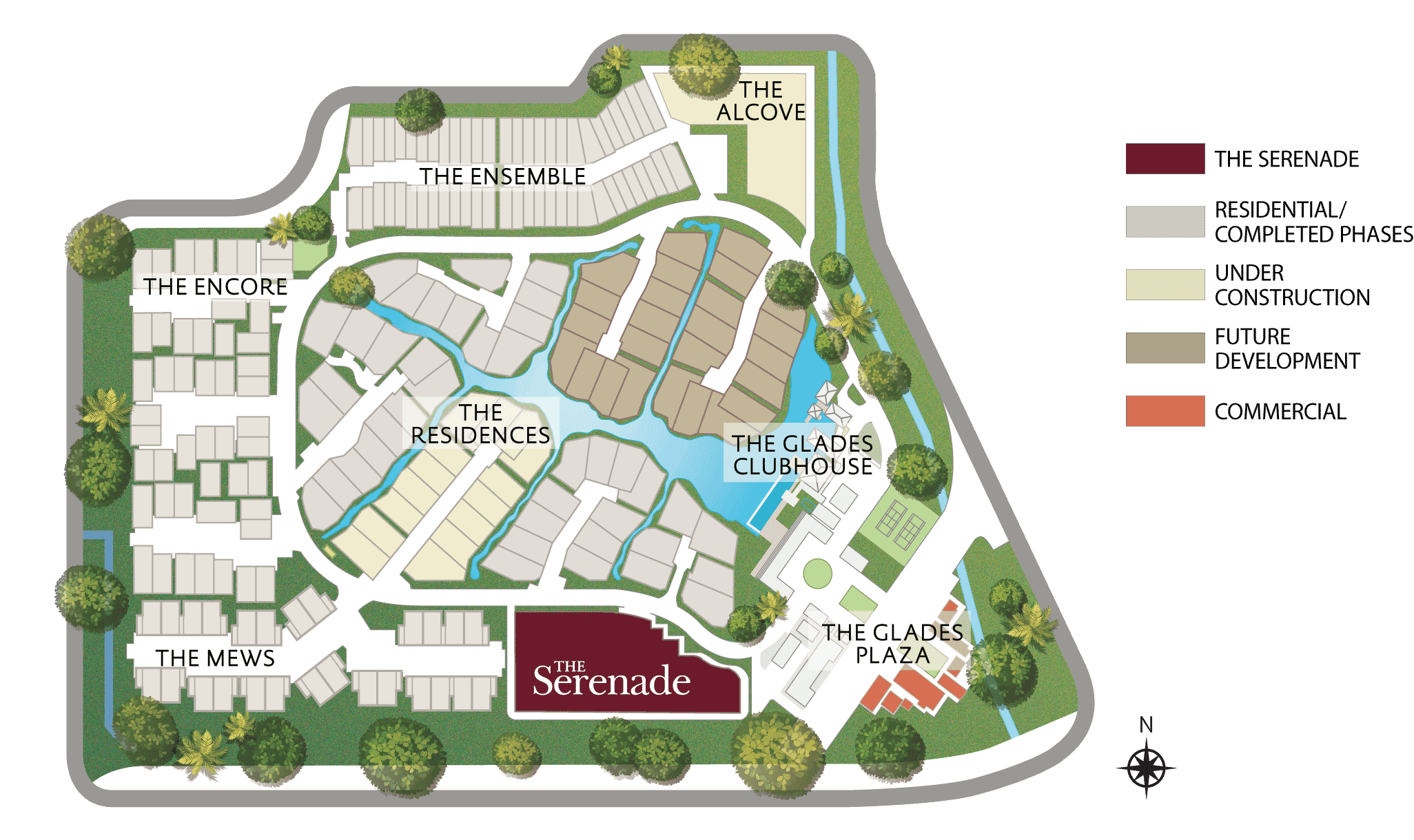 Experience the beauty of nature at every turn: on the meandering paths within The Glades and in The Serenade’s garden plaza, adorned with trees and a water feature.